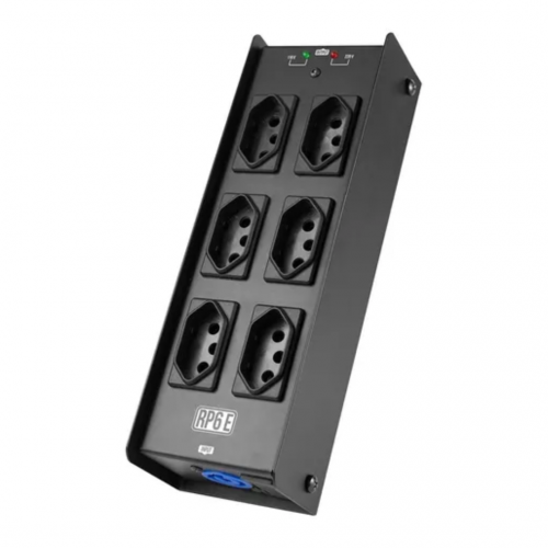 As réguas de tomada para palco RP6 da SANTO ANGELO foram desenvolvidas seguindo as normas ABNT NBR 14136 e ABNT NM 247-5, para atender desde pequenos a grandes eventos. Tem capacidade de trabalho de 10A sendo 1100W/110V e 2200W/220V, e contam com fusível de proteção, diminuindo o risco de seus equipamentos sofrerem danos elétricos. • Led Verde: Energizado em tensão de 110V. • Led Vermelho: Energizado em tensão de 220V (acenderá simultaneamente com o led verde).