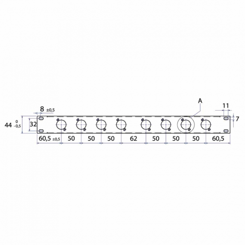 Régua para racks apropriada para 8 conectores XLR fêmea painel. Fabricada em chapa SAE 1010.