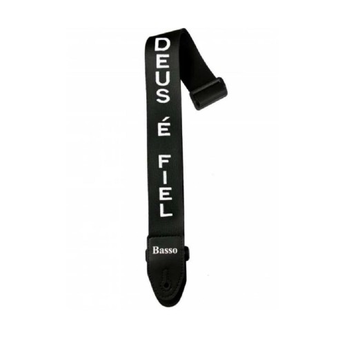 A correia Basso NY-01 é fabricada em polipropileno de alta resistência, BORDADA "DEUS É FIEL" em alto padrão de detalhes. A ponteira onde o instrumento é engatado foi desenvolvida com um reforço interno a fim de não "esgaçar" e com a ação do tempo e não escapar do instrumento. Possui 5cm de largura e comprimento regulável entre 1,00 e 1,50 metros.