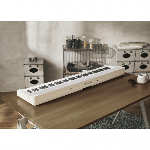 O Casio Casiotone CT-S1-76WE é um teclado portátil digital com 76 teclas de tamanho padrão projetado para oferecer uma experiência musical versátil, expressiva e acessível para iniciantes e músicos experientes. Ele combina som de alta qualidade, recursos úteis de performance e conectividade moderna com um design leve e elegante, ideal para prática em casa, apresentações simples ou estudo musical geral.