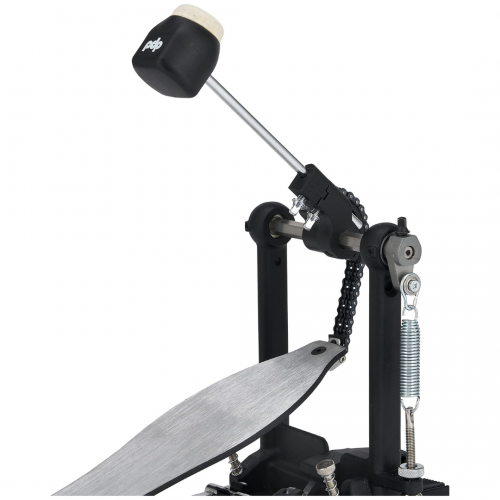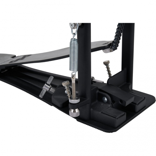 A Pacific Drum Company apresenta este pedal projetado que é elegante e responsivo. O design de poste duplo é equipado com uma corrente dupla, sistema de acionamento concêntrico, estribo fundido liso com dobradiça de rolamento de agulha integrada e uma braçadeira de biqueira deslocada.