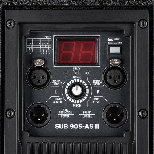 O subwoofer ativo SUB 905-AS II é ideal para a construção de sistemas satélites de subwoofer potentes onde a compactação e altos níveis sonoros são necessários ao mesmo tempo. O SUB 905-AS possui a mais avançada tecnologia de woofers RCF, juntamente com um poderoso amplificador digital de 2200 W. Oferece a mistura perfeita de reprodução de graves, alto SPL e dimensões compactas para uso móvel por bandas ou DJs.