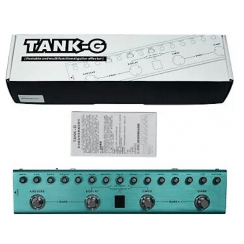 TANK-G é um pedal multiefeitos para guitarra, portátil e multifuncional. Construído com bateria recarregável. 36 Presets editáveis dentro, o usuário pode personalizar a cadeia e salvá-la. Equipado com Noise Gate,9 slots de seleção Preamp, 3-band EQ,3 modulações, 3 Delay,3 Reverb, 8 IR CAB slots e um afinador.