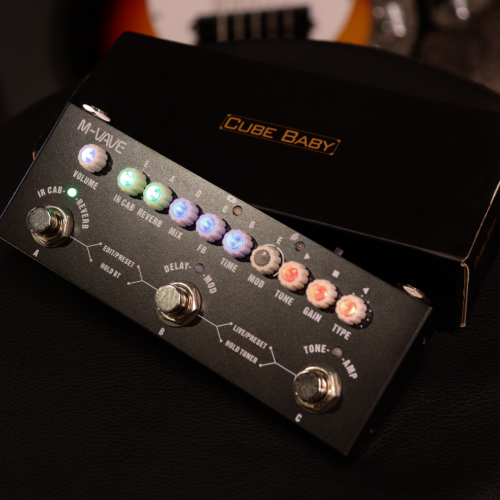 O CUBE BABY contém 9 IR clássicos, dois efeitos de modulação (chorus, phaser), um tape delay, um efeito de reverb, oito modelos IR de gabinetes clássicos.