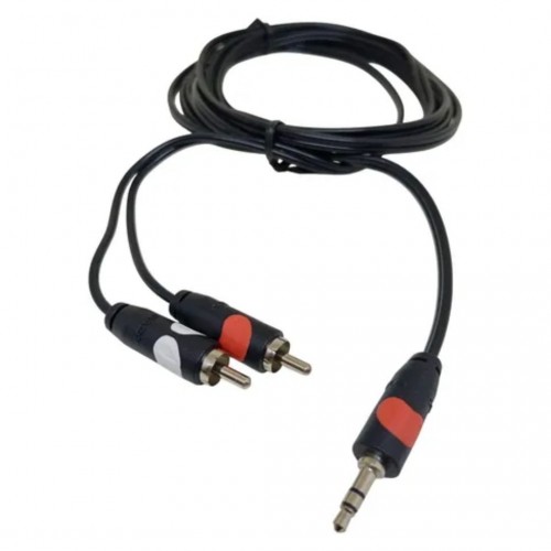 - Tipo de cabo: Áudio analógico estéreo com conector P2 (3,5 mm) em uma ponta e 2 plugs RCA (direito/esquerdo) na outra.
